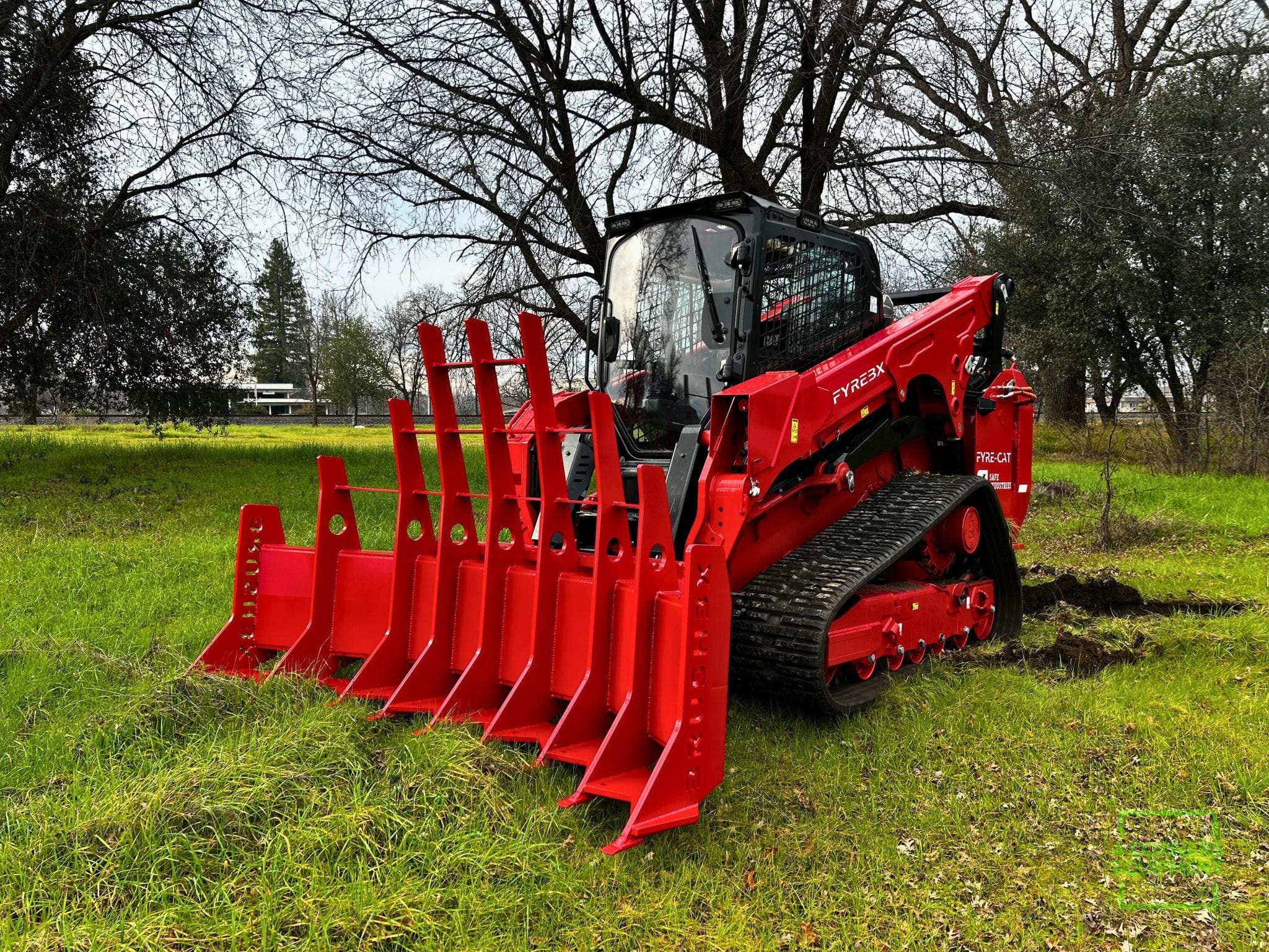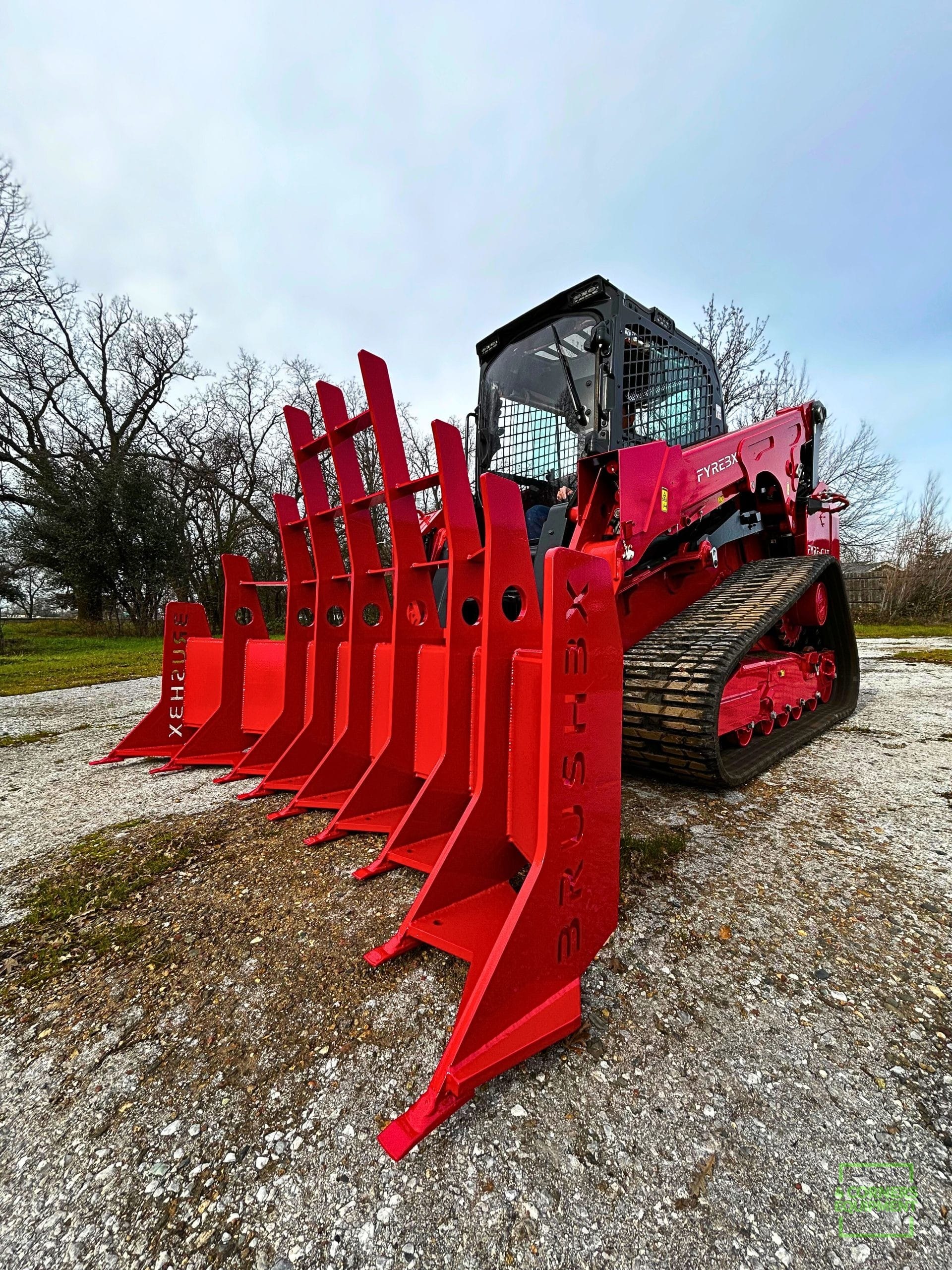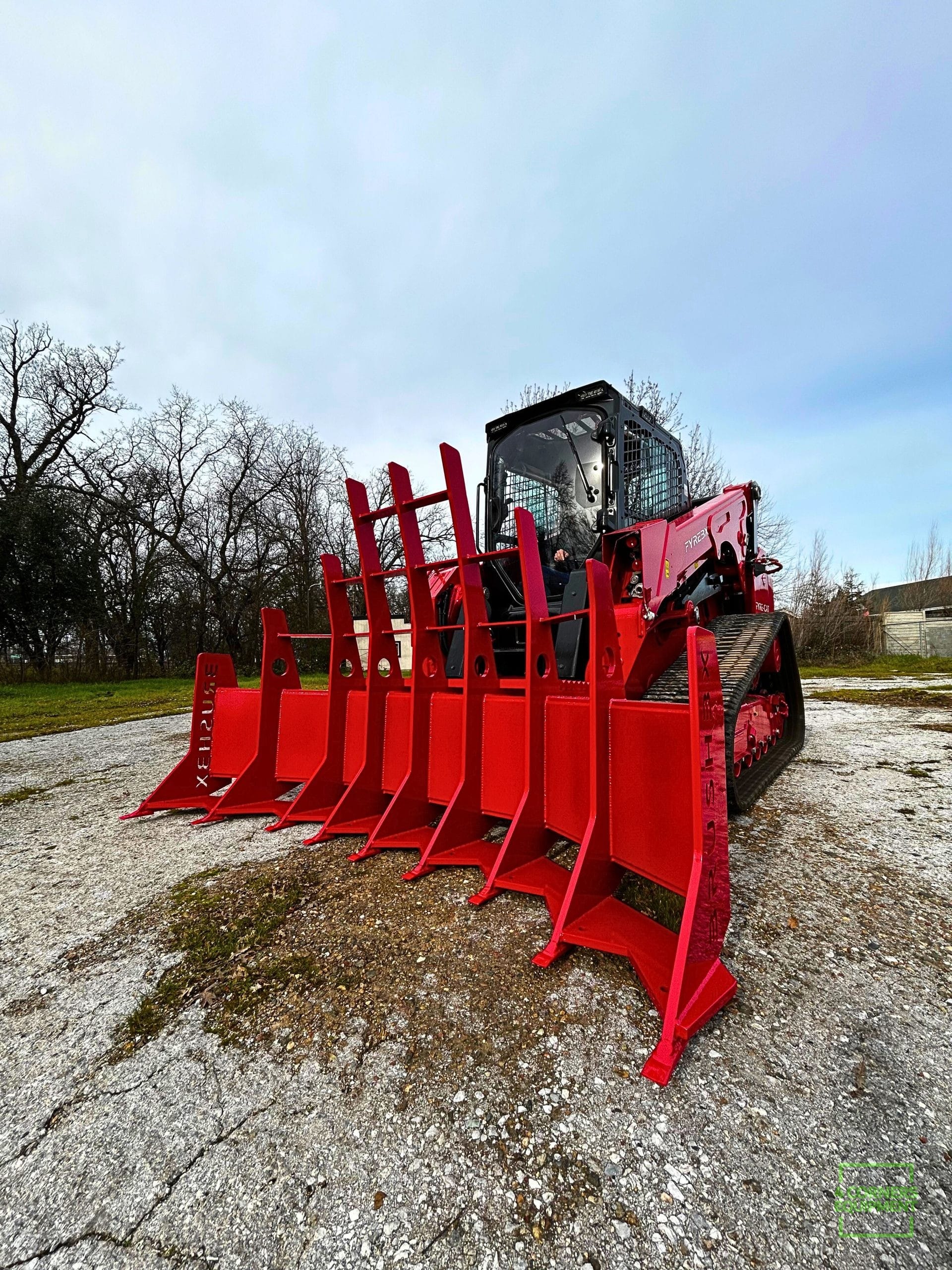 The FYREBX BRUSHBX is a purpose-built brush rake attachment designed to remove small and large brush — including small trees — by the roots, without stripping topsoil or damaging ground integrity. Built for compact track loaders and engineered to work where dozers and light-duty brush rakes fall short, the BRUSHBX delivers controlled, aggressive clearing while preserving the land beneath it.
