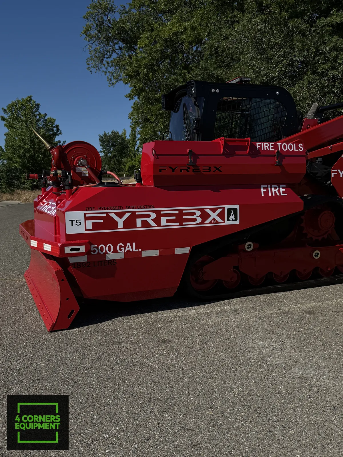 The FYREBX T5 is a 500-gallon mobile firefighting and water deployment system designed for compact track loaders. This high-capacity attachment delivers water or foam to remote locations where traditional fire trucks and trailers cannot access.